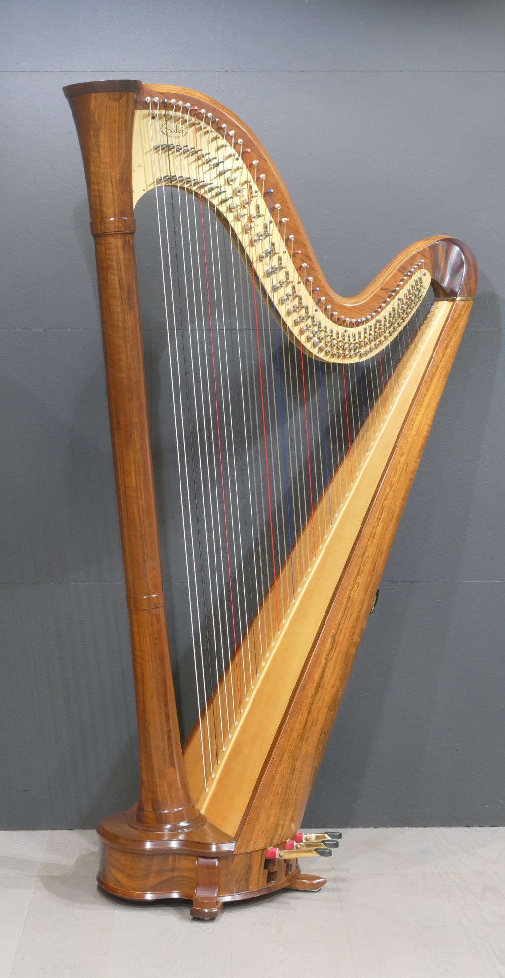 | Klang: | Klangstark, durchsetzungsfähig und brillant. Erstklassige Konzert-,Orchesterharfe. |